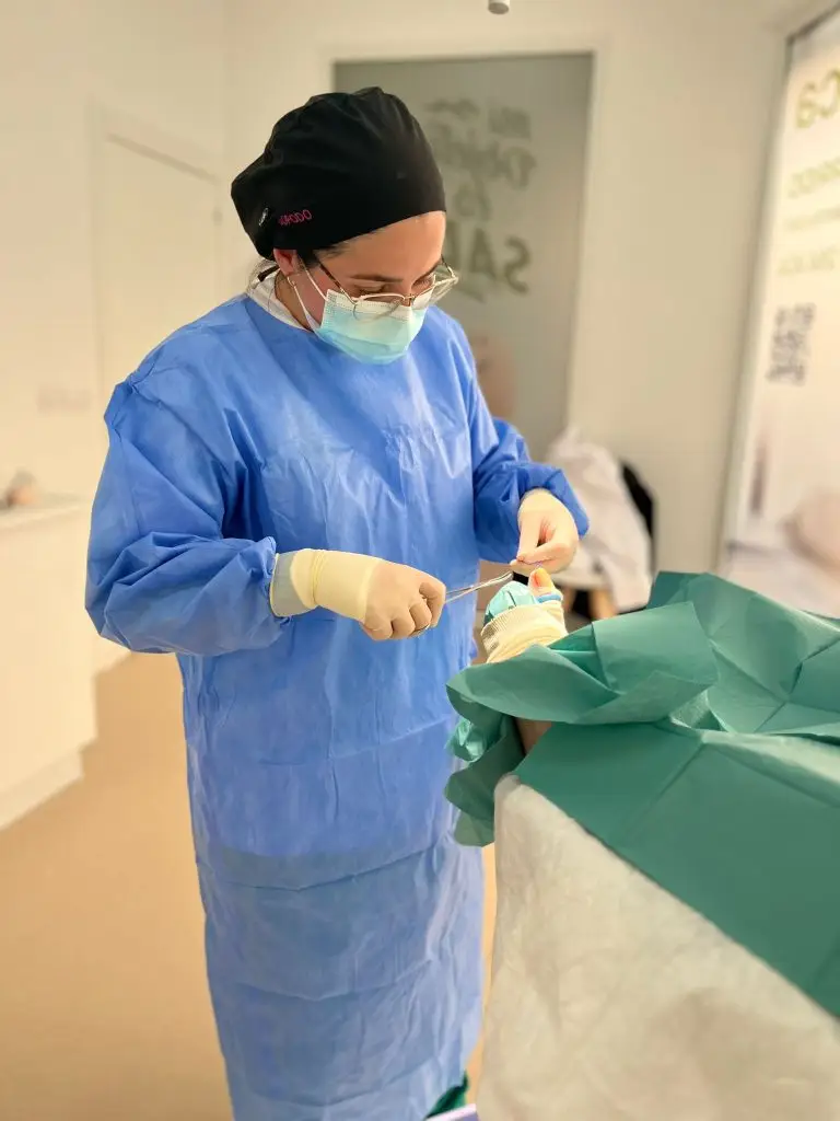 - Evaluación inicial: Valoramos el estado de la uña y la necesidad de intervención quirúrgica.